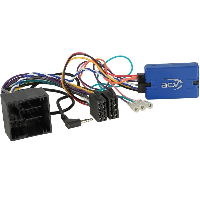 In deze interface zit tevens de ISO-verloopstekker verwerkt. Ook wordt voorzien in plus via contact (+15), achteruitrij-signaal en snelheidssignaal.