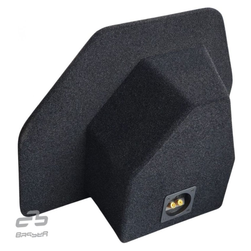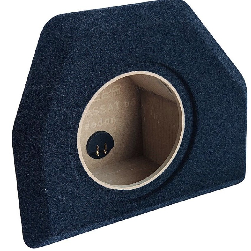Pasklare subwooferbehuizing, vervaardigd van 15 mm MDF, gestoffeerd met zwart gemêleerde bekleding, voor de Volkswagen Passat B6 Sedan  2005 – 2010 en Passat B7 Sedan  2010 – 2014