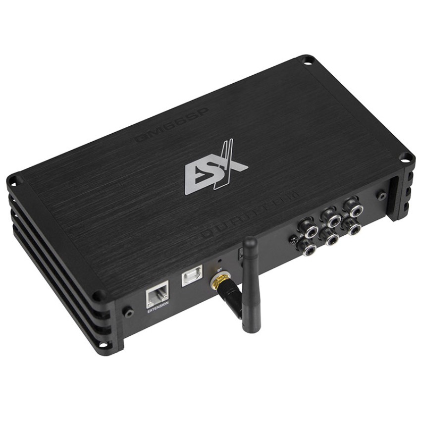 Na reeds eerder op succesvolle wijze sound processors in de markt te hebben gezet, luidt ESX de volgende ronde in met de Quantum QM66SP . De nieuwe 6-kanaals processor is geïntegreerd in een hoogwaardig aluminium koellichaam en biedt een nog betere standaarduitrusting. Dankzij de geïntegreerde Bluetooth-ontvanger kan de app-versie van de ESX DSP Toolkit live en in realtime vanaf uw smartphone worden gebruikt inclusief HD-audiostreaming. De als accessoire verkrijgbare RC-DQ LCD-afstandsbediening biedt extra gebruiksgemak.