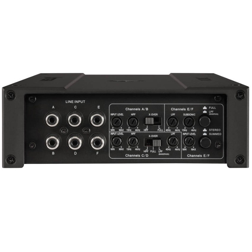 Om de versterker geschikt te maken voor de verschillende headunits zijn zowel RCA-ingangen aanwezig als een high level input (tot 14 volt !). Maar dankzij het geavanceerde ADEP-circuit werkt de versterker zelfs op originele headunits welke beschikken over een speakerdiagnose functie (weerstandsmeting).